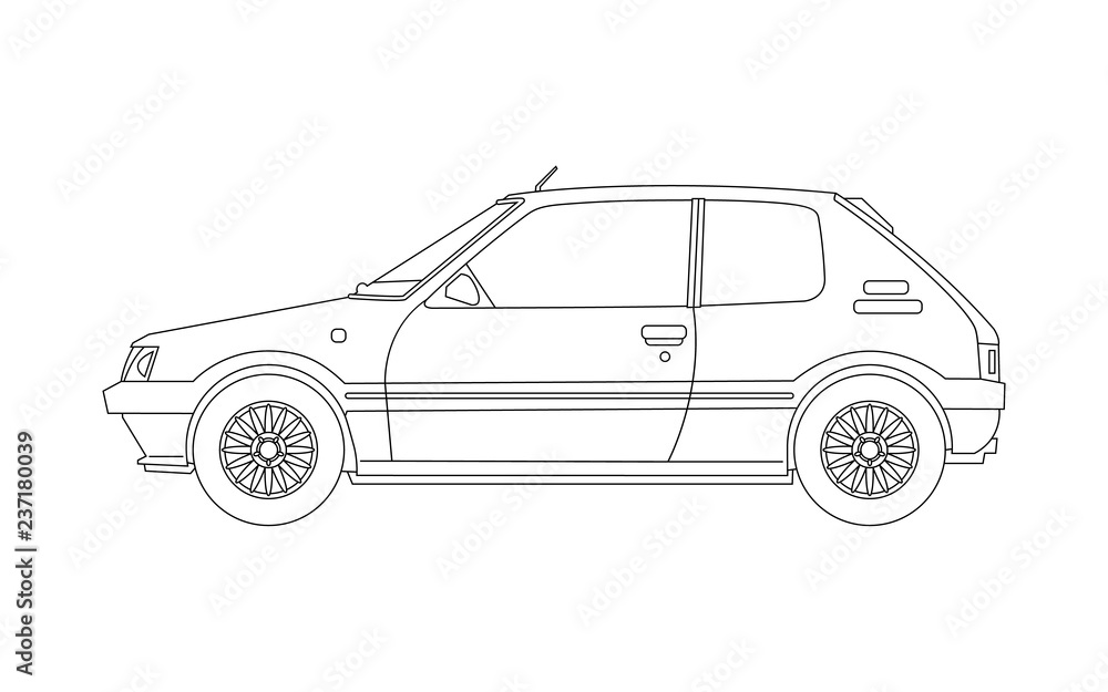 Old Small Car Blueprint Side View Outline Version Vector Stock Vector Adobe Stock